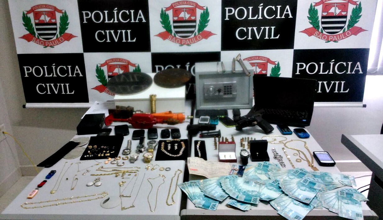 Nesta ação, os agentes localizaram e apreenderam mais de R$ 10 mil em dinheiro, diversas jóias, telefones celulares, veículos, inclusive uma moto avaliada em R$ 80 mil, além de armas e ferramentas para arrombamento de cofres.